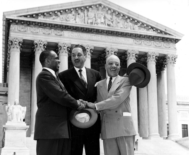 Attorneys George E.C. Hayes, left, Thurgood Marshall, center, and James M. Nabrit, all HBCU grads, successfully sought to defeat school segregation in court. AP Photo