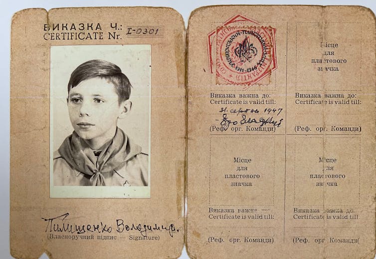 The author’s father, Wolodymyr ‘Mirko’ Pylyshenko, pictured in an ID card at a German displacement camp for Ukrainians. Katja Kolcio