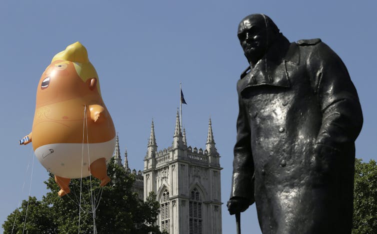 Donald Trump is no Winston Churchill and the coronavirus pandemic is not like a world war. (AP Photo/Tim Ireland)