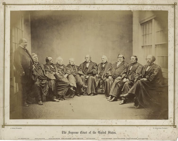 The 9-member Chase Court in 1867, dominated by Northern Republicans. Alexander Gardner/The U.S. Supreme Court