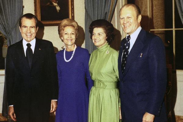 The Nixons celebrate with the Fords after Rep. Gerald Ford's appointment to replace Spiro Agnew as Vice President, 1973