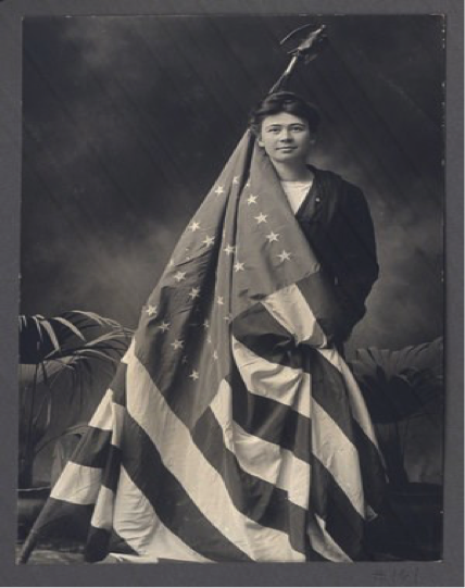 The first came in our study of the Calumet massacre that angered Guthrie many years later, so called because after an intense standoff between laboring miners and the Calumet & Hecla Mine Company, seventy-three individuals, most of them children, lost their lives in a crushing stampede in the stairwell of the town’s Italian Hall after someone opened the door and yelled fire. After the false alarm was sounded, the door was barred shut, with many believing mine ownership and their police force were behind the tragedy, adding insult to injury. Throughout the build up and aftermath of the tragedy, however, labor leader Annie Clemenc stood tall. In fact, she was often referred to as “Big Annie.” She was also not afraid to use the American flag to support the cause of first-and second-generation laborers seeking better wages and working conditions.